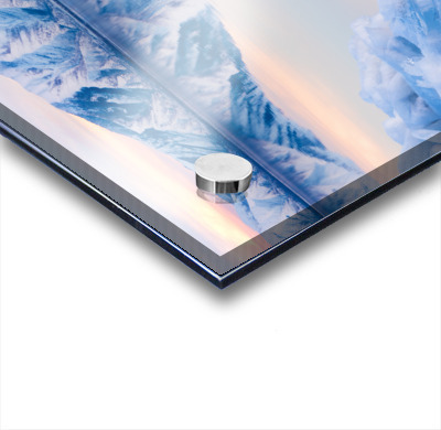 Printed to the edge - Ready to hang - provided with 4 premium polished aluminum stand off ( wall screws and mounting hardware provided )