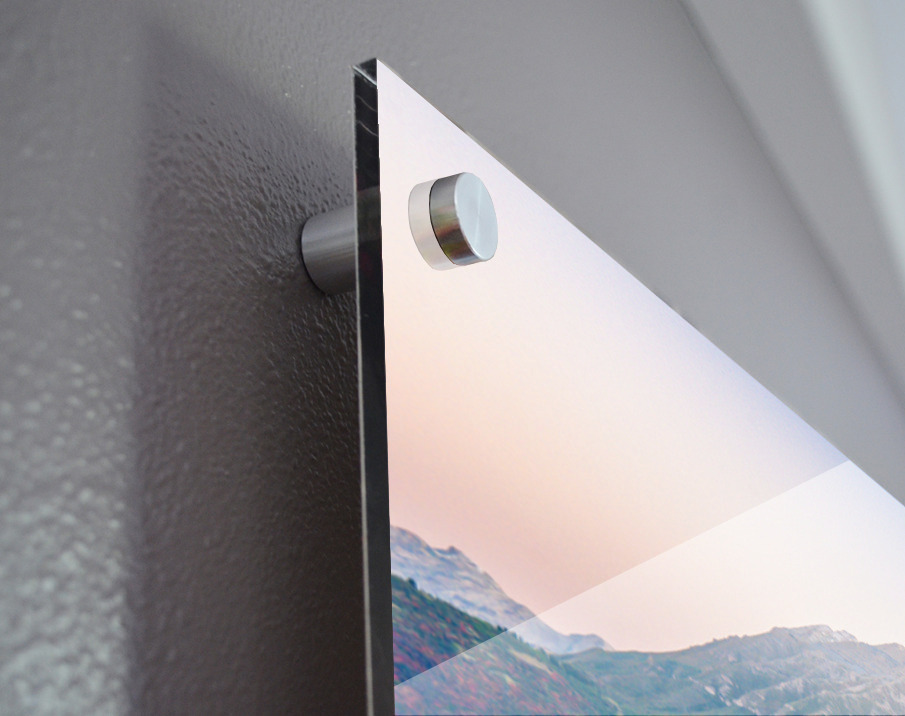 Printed to the edge - Ready to hang - provided with 4 premium polished aluminum stand off ( wall screws and mounting hardware provided )