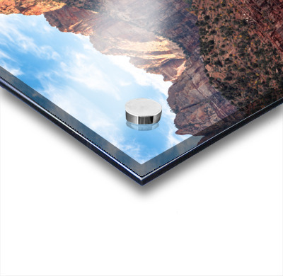 Printed to the edge - Ready to hang - provided with 4 premium polished aluminum stand off ( wall screws and mounting hardware provided )