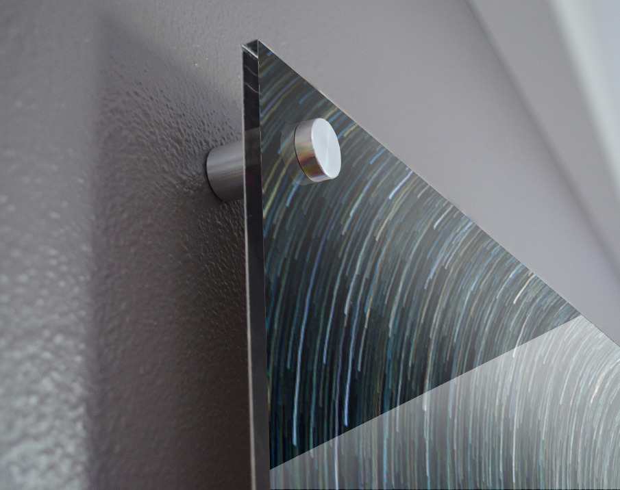 Printed to the edge - Ready to hang - provided with 4 premium polished aluminum stand off ( wall screws and mounting hardware provided )